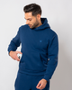 The buttoned hood closure gives you styling options: fasten it for extra warmth or leave it open for a relaxed vibe. Three pockets include a spacious front kangaroo pocket with two hidden zip compartments inside for secure storage. The rich navy blue colourway elevates your off-duty wardrobe.